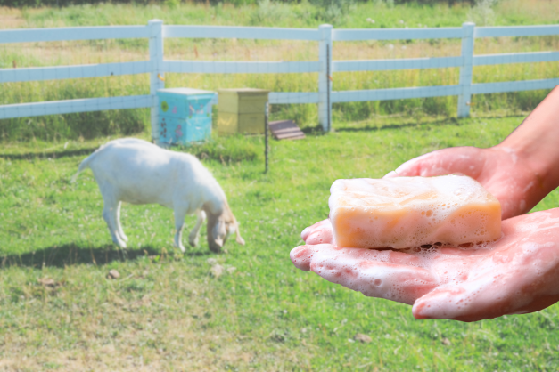 Leche de cabra fresca de granja : Procedente directamente de nuestra granja, la leche de cabra es rica en nutrientes y tiene un nivel de pH que es amigable con la piel humana, proporcionando humectación natural.