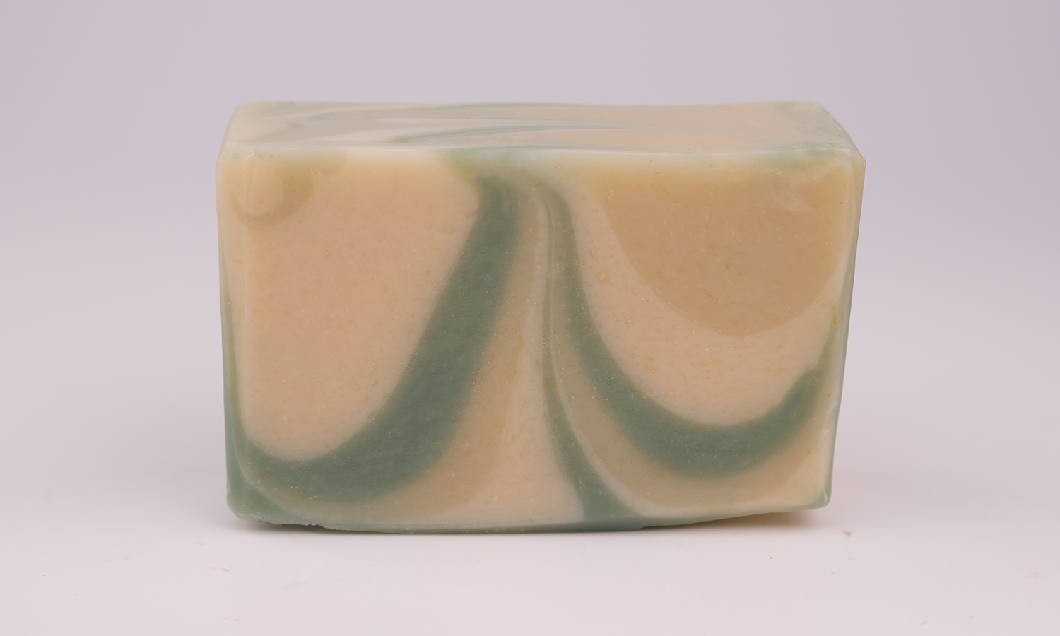 Ingredientes: aceite de oliva, leche de cabra, aceite de coco, hidróxido de sodio, aceite de aguacate, aceite de almendras dulces, aceite de salvado de arroz, manteca de karité, manteca de cacao, aceite de ricino, miel, espinacas en polvo, mica, fragancia: mezcla de aceites esenciales de pino negro. Aguja de pino, madera de cedro, ciprés y baya de enebro.