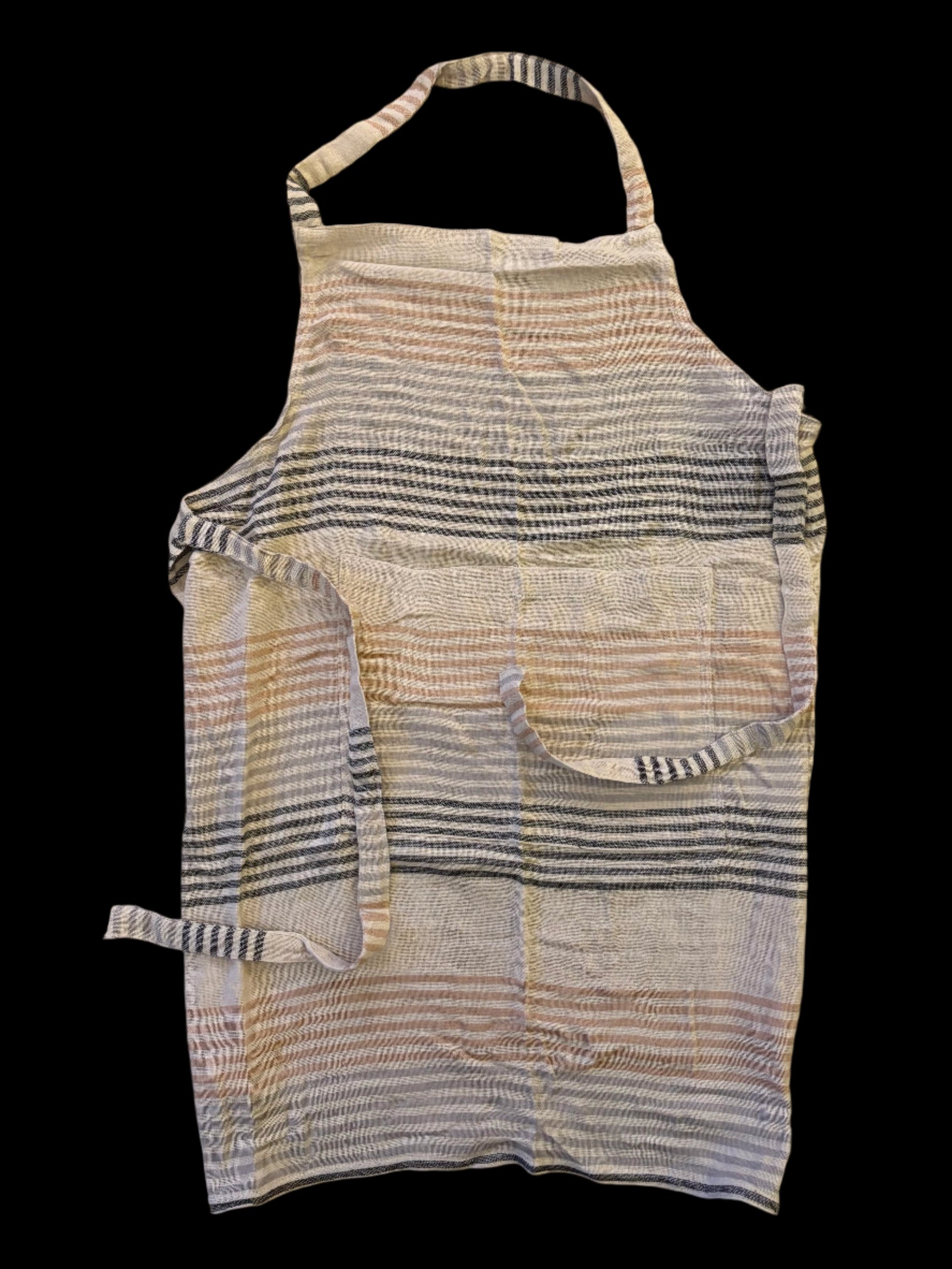 Precio unitario / porInfuse elegance into your kitchen routine with the 32''x28'' Cotton Woven Apron featuring sophisticated grey, black, and gold stripes on a cream background. Crafted from 100% cotton, this apron offers breathable comfort and durability, ensuring it stands up to daily wear. Its adjustable tie neck and waist design provide a customizable fit, combining practicality with classic style. The large double front pocket is ideal for storing kitchen essentials like utensils, recipe cards, or even your phone, keeping your tools within easy reach. Whether you're baking, grilling, or hosting a dinner party, this apron strikes the perfect balance between functionality and timeless charm.