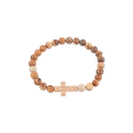 PULSERA ELÁSTICA CRUZ DE PIEDRA NATURAL MARTILLADA