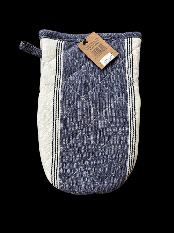 Protect your hands in style with the durable Blue Striped Cotton Oven Mitt. Crafted from 100% cotton, its thick quilted design offers superior heat resistance, ensuring safety and comfort while handling hot cookware. Measuring 9.5 inches long by 6 inches wide, it provides ample coverage for a secure fit and protection during everyday kitchen tasks. The tasteful blue striped pattern adds a touch of farmhouse charm, seamlessly blending functionality with timeless aesthetics. Whether you're baking, broiling, or roasting, this oven mitt is a reliable and stylish addition to any kitchen.